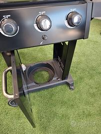 Barbecue a gas, inscatolato, nuovo. Marchio Broil king. 3 bruciatori Dual Tube da 8,80 kw, 2 griglie in ghisa pesante trattata. Ripiani laterali pieghevoli.