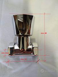 Rubinetto arresto cromato da 1/2 F.F. lunghezza mm. 52, adatto per arresto acqua cassette, scaldabagni, acqua terrazzo e quant'altro. Montaggio esterno parete (non da incasso).