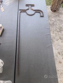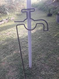 Elemento artistico in ferro corten che simboleggia l'elemento dell'acqua. Ornamentale per giardini di stile o loft industrial. misure 162 altezza massima compresa di stelo, larghezza rubinetto 55- altezza 37 quadrello di ferro pieno in unico elemento sagomato da 1,3 cm × 1,3cm. Pezzo unico di artigianato artistico ad un prezzo simbolico