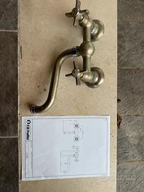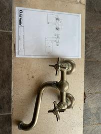 Rubinetto a due manopole in acciaio inossidabile satinato per esterno marca Flli Frattini completo di scheda tecnica per dimensioni e eccentrici per montaggio