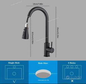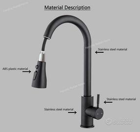 ✅NUOVO✅1 set di rubinetto per lavello da cucina con 2 funzioni, estraibile per acqua calda e fredda, bocca rotante per risciacquo del lavabo, in acciaio inossidabile, con accessori per l'installazione e tubo flessibile per l'alimentazione idrica.