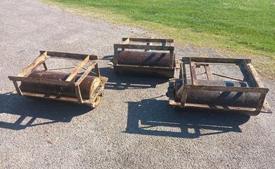 Rullo liscio a tre moduli di larghezza 75cm ciascuno per circa 2m complessivi. Boccole in teflon, appesantito con olio, peso totale circa 350kg.