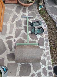 rullo per tappeti erbosi più due racchette areazione, e due porta vasi in ferro battuto