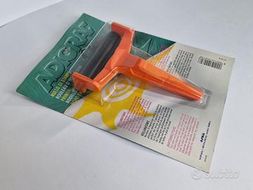 "Rullo da stampa realizzato con uno speciale materiale plastico che consente una perfetta stesura degli inchiostri, sia grassi che all'acqua. La particolare forma del manico permette un'ottima impugnatura. Per non sporcare il piano di lavoro, capovolgere il rullo, dopo aver inchiostrato."