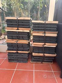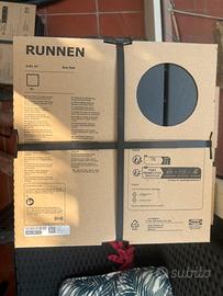 Runnen pedana pavimentazione da esterno grigio scuro, marca Ikea. Ogni pacchetto contiene 9 piastrelle e copre un totale di 0,81m2 A disposizone 8 confezioni per un totale di 72 piastrelle, copertura 6.48 m2 Con questa pedana è facile rinnovare il terrazzo o il balcone. Pedana in plastica: resiste alle intemperie ed è di facile manutenzione. Puoi tagliare le pedane per adattarle agli angoli e agli spazi intorno a colonne o strutture fisse. È facile separare le pedane quando vuoi pulire il pavimento sottostante e rimontarle successivamente. Designer IKEA of Sweden