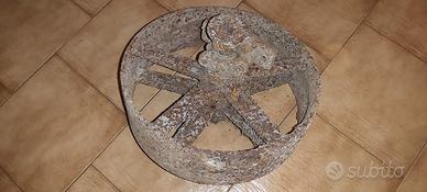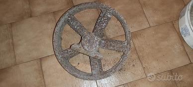 Ruota carriola antica in ferro pieno