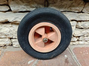 Da sistemare, coppertone leggermente danneggiato, camera d'aria bucata, struttura ancora valida. Diametro ruota: 39cm Lunghezza asse: 16cm
