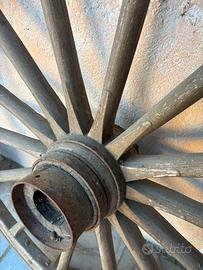 Antica ruota carro in legno con stand in ferro battuto. Diametro 155cm. Il legno non presenta parti marcie. Ottime condizioni per la sua età. Ideale per la realizzazione lampadari di grandi dimensioni o tavoli. No spedizione