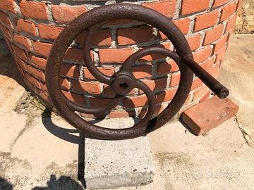 Ruota in ferro vecchia, che serviva una volta per pompare l’acqua del pozzo. diametro cm. 50. .