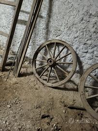 vendo 2 ruote carro agricolo 1 da cm 94 ed 1 da cm 98 di diametro .sono in legno e sono ideali x giardini porticati e taverne. il prezzo si intende cadauno.