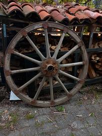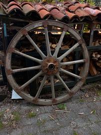 Vendo coppia di ruote originali di carro agricolo d’epoca, in legno massello con cerchio in ferro. Oggetti autentici, non repliche, ideali per arredo rustico, giardino, agriturismo o restauri. Le ruote sono in buone condizioni strutturali, con naturale patina del tempo che ne valorizza il fascino vintage. Perfette come: * decorazione da giardino o terrazza * arredo per locali, agriturismi o vetrine * Materiale: legno + ferro * Diametro: circa 112 cm Prezzo: 125€ l'una Ritiro a mano preferito. Contattami per info o foto aggiuntive.