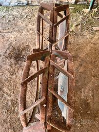 Gabbie di ferro per motocoltivatore sono doppie Alte 54 larghe 26 Foro centrale da 50mm i fori piu grandi sono per i distanziali Intarasse 85 mm