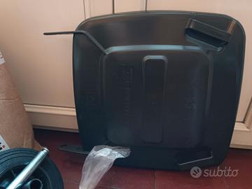 vendo doppio paio di ruote, con relativi assi in ferro, e n. 2 coperti in plastica di bidoni di dim. 120L colore grigio per la raccolta differenziata di rifiuti.