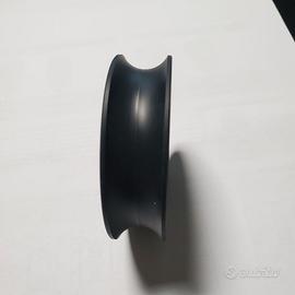 N. 40 Ruote a carrucola per guida tonda Diametro esterno 70 mm - altezza 20 mm - diametro gola 12 mm composta da materiale esterno in plastica nera resistente, cuscinetto 6301 2RS + seeger, foro per vite centrale d.12 mm. Il prezzo è riferito al singolo componente. Costruita su ns. disegno.