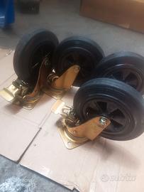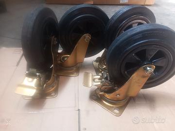 Vendo 4 ruote girevoli in ottime condizioni, praticamente nuove h=250, diametro ruota 200,portata 225kg l'una,con o senza freno.Disponibili più pezzi