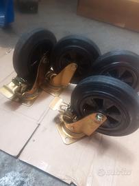 Vendo in ottime condizioni ruote girevoli. H 250 mm diametro ruota 200mm. Portata peso 225 kg. Disponibili in più pezzi con e senza freno.