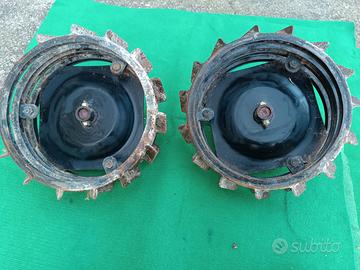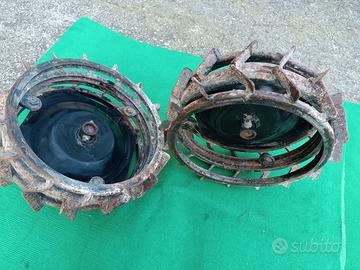 X MOTIVI DI INUTILIZZO VENDO N2 RUOTE A GABBIA CON SPESSORI IN FERRO X MOTOZAPPA. X MUOVERE LA TERRA. USATI POCHISSIMO TENUTI BENISSIMO NON ROTTI. LE FOTO PARLANO CHIARO X INFORMAZIONI CONTATTARE