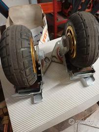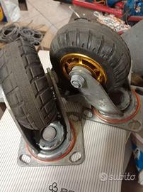 Vendo 2 ruote piroettanti con freno praticamente nuove h 17 cm circa compresa piastra fissaggio prezzo trattabile evitiamo offerte ridicole , grazie .