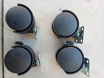 vendo 4 piccole ruote in plastica con aggancio in ferro. girano a 360 gradi. 2 con possibilità di bloccarle.