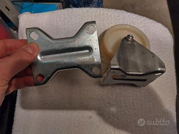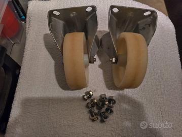 Ruote in plastica dura su staffa metallica compresi dadi di fissaggio. Euro 8.00 la coppia.