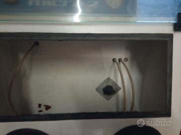 Sabbiatrice Silfradent per settore orafo odontotecnico,con due serbatoi di sabbia, funzionante ma da rivedere un po' ,lavori da fare: sostituzione guanti puntali e tubi in gomma,pulizia generale,un po' di ruggine sul fianco destro,ma non influisce sul funzionamento,no istruzioni,non più valida per utilizzo professionale ma solo x uso hobbistico,prezzo di realizzo, Vendita tra privati,.Dimensioni cm 47x47x 49 cm di altezza,spedizione non possibile con Subito, causa 28 kg di peso.N.B.non e' una sabbiatrice per uso industriale! Prezzo riferito al solo oggetto, esclusa spedizione,altre info in chat.