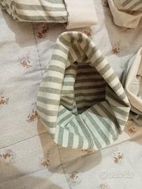 Sacchetti cotone nelle tonalità del verde e panna.Sono 6. utili per abbellire una piantina, come contenitori,etc.prezzo euro 1.Consegna a mano zona Avellino
