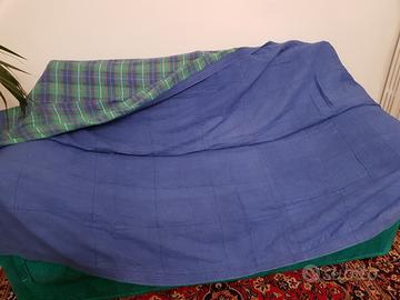 Due Sacchi a pelo Caleffi (imbottitura in poliestere,Fodera superiore 59% in poliestere e 41% in viscosa.Fodera inferiore in 100% in cotone).Usati pochissimissimi volte.Piu' due copriletti in cotone singoli adatti per lettini o in tenda.