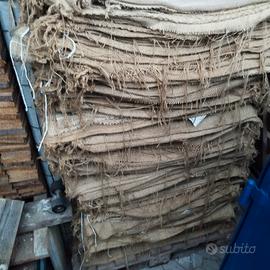 vendo sacchi di juta ottimi per qualsiasi uso possa venire in mente. orto pacciamatura, per protezione alberi, tronchi e radici dal freddo, borse, tessili, apicoltura,ecc. misure circa 100x70 cm, quindi essendo un sacco ci sono due pezzi da 100x70 cm. oppure un pezzo intero 200x70cm se tagliati sul lato lungo o 140x100 se aperti sul lato corto. ogni sacco pesa circa 500- 700 grammi. costo 1 euro a sacco. SCRITTE, DISEGNI SONO PURAMENTE INDICATIVI, I SACCHI SONO IMPILATI E NON E' POSSIBILE SEMPRE TROVARE SCRITTE O DISEGNI, CHE VARIANO IN BASE AI LOTTI. costo spedizione variabile in base a quantità e peso. CON LA SPEDIZIONE SELEZIONATA CON SUBITO SI POSSONO SPEDIRE CIRCA 30-35 SACCCHI AL MAX. per quantità maggiori devo modificare la selezione della spedizione oppure spedire con corriere.