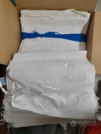 Sacchi in raffia sintetica o polipropilene PPL per confezionare velocemente qualsiasi prodotto. Robusti e riutilizzabili, resistono ad urti e strappi, alla corrosione chimica e non assorbono acqua. Misura 45 cm x 75 cm. Vendita singolo sacco al costo di euro 2,00 cad. Si valutano richieste per gruppi di 10 sacchi al costo di 15,00 euro a gruppo. Possibile spedizione tramite Servizio Poste delivery Business al costo di 10,00 euro in tutta Italia. Disponibili 100 sacchi in totale.