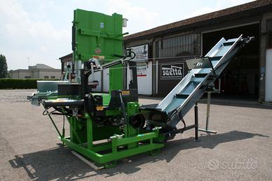 La nuova Saetta 700 SUPER PRO CUTTING MULTIMATIC ha uno spaccalegna innovativo e velocissimo dietro al banco di taglio per permettere all’operatore di far proseguire il ceppo tagliato direttamente nella culla di spacco senza esporsi con le mani.