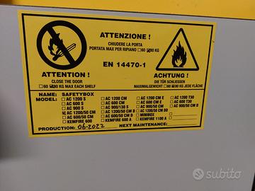 Armadio di sicurezza per lo stoccaggio di 30 litri di prodotti liquidi e solidi infiammabili certificato secondo le norme: EN 14470-1, EN 16121, EN 16122.