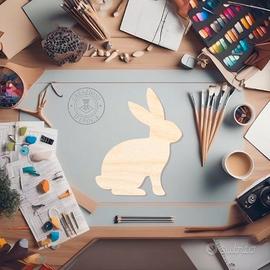 Sagome Coniglietto di legno naturale di pioppo di varie misure a scelta, di spessore 0,3cm.