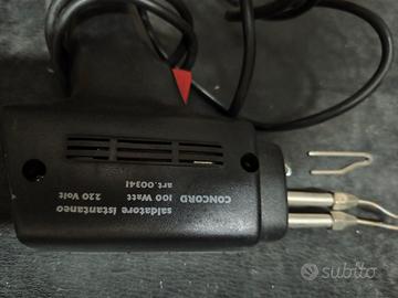 VENDO QUESTO SALDATORE A STAGNO ISTANTANEO A FORMA DI PISTOLA, ELETTRICO CON FILO, DA 100W, PER SCARIATI TIPI DI SALDATURE PER CIRCUITI ELETTRONICI. DOTATO DI ULTERIORE PUNTA NUOVA E SULLA PISTOLA C'È UNA PICCOLA LUCE CHE SI AZIONA CON IL PULSANTE, COMODA PER LAVORETTI CON SCARSA LUCE. USATO 2 O 3 VOLTE E PERFETTAMENTE FUNZIONANTE. COMPLETO DELLA SUA SCATOLA NON IN OTTIME CONDIZIONI.
