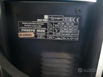 Saldatrice a elettrodo professionale. marca SAF-FRO, modello Presto 160G. Potenza 160 amper.
