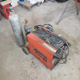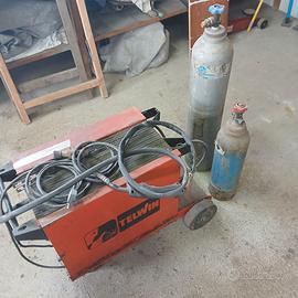 Saldatrice a filo uso professionale a 220volt, carellata, usata, ferma da un paio d'anni per chiusura attivita. Dotazione 2 bombole gas ricaricabili.