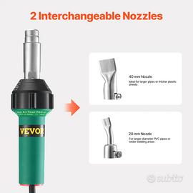 • Venditori Affidabili di Esperienza • Spediamo ovunque, anche in Contrassegno • Vendiamo solo articoli Nuovi di prima qualità • Contattaci per qualsiasi info necessaria Facile da usare e trasportare: il kit saldatore di plastica ad aria calda è costruito con un potente motore da 1600 W, che lo rende ideale per modellare, saldare e piegare materiali termoplastici. Compatto ed ergonomico, è facile da tenere, leggero da trasportare e adatto sia ai principianti che ai professionisti. Lunga durata di servizio: gli ugelli e i manicotti di questa saldatrice ad aria calda per plastica sono realizzati in acciaio inossidabile resistente alle alte temperature. Progettata per resistere alla corrosione e all'usura, rimane forte e stabile anche durante un uso intenso senza sudare. Intervallo di calore regolabile: questo kit di pistola per saldatura in PVC riscalda da 122 °F a 1112 °F/50°C a 600°C, rendendolo perfetto per una varietà di materiali. Imposta facilmente il tuo livello di calore ideale con la manopola a 9 livelli. L'impugnatura resistente al calore garantisce sicurezza e comfort durante ogni progetto. Ampia applicazione: la saldatrice per PVC con pistola ad aria calda è uno strumento versatile per riparare kayak, teloni per camion, tetti in TPO, pavimenti in PVC, tessuti impermeabili, piscine, paraurti per auto e altro ancora. Attrezzatura indispensabile per la saldatura: il kit pistola saldatrice PVC include tutti gli elementi essenziali: 1 ugello di saldatura piatto stretto da 20 mm, 1 ugello di saldatura piatto largo 40 mm, 1 rullo di saldatura rosso da 40 mm, 1 nucleo riscaldante e 1 spazzola metallica. Questo set completo ti fornisce un lavoro di saldatura e riparazione efficiente.