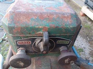 Funzionamento perfetto, 15 ampere, 5 chilowatt, ventilata, trifase ma anche 220 volt con modifica morsetti. Acquistata negli anni 70, presenta in buone condizioni, molto pesante, carrellata. Usata, ultimamente, due anni fa, per una piccola inferriata. Completa di cavi, con pinze per elettrodo e massa, nonché prolunga blu da 20 metri, con spina per attacco in trifase e maschera protettiva.