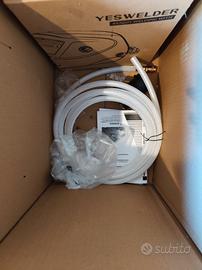 usata 2 volte , dotata di rullo in ferro e non in plastica , può andare anche con il gas e senza compreso nel prezzo è compresa una bobina di filo, maschera da saldatore con vetro auto oscurante e ricambi per la torcia solo tra bobina e maschera ci sono 150 €.