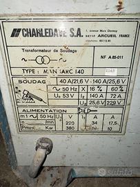 Salve Causa totale inutilizzo , si cede saldatrice professionale Manuarc 140 come da foto! Appartentua a mio padre , allego foto delle specifiche tecniche! Si cede per immediato realizzo Saluti