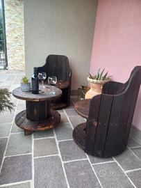 esclusivo salottino da esterno per godersi il portico oppure il giardino, in solido legno ben lavorato con trattamento antitarme naturale. Impilabile nel periodo di non utilizzo così da non occupare molto spazio.