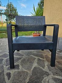 Salottino da esterno composto da due sedute singole, un divanetto 2 posti e un tavolino. Buone condizioni.