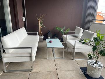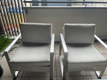 Il divano e le sedute hanno inoltre cuscini e schienali sfoderabili, lavabili, in tela bianca. (Con cerniere)