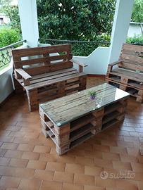 salottino da esterno fatto con epal e vetro temperato