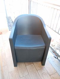 Salottino da giardino, in robusta plastica, colore grigio antracite, composto da tre pezzi: due poltrone comode e ampie un tovalinetto. Nuovo.