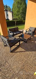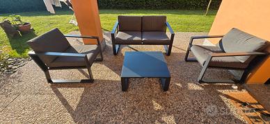 vendo salottino da giardino composto da divanetto 2 poltrone e un tavolino struttura in alluminio tavolino con piano in vetro misure divanetto 120x70x55 poltrone 66x70x55 tavolino 64x64x27