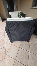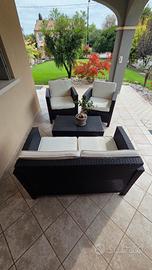 Vendo salottino da giardino in Rattan nero. Completo di cuscini bianchi.