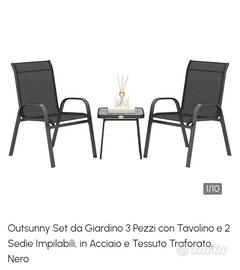 Set da Giardino o balcone 3 Pezzi con Tavolino e 2 Sedie Impilabili, in Acciaio e Tessuto Traforato, Nero Nuovo ancora da montare