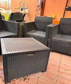 Con il vento è caduta una pedana e ha fatto un buco in una poltrona. È stabile perchè il materiale è tanto resistente. Ritiro a mano, non trasporto io.