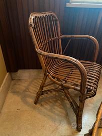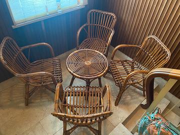 salottino midollino 4 poltroncine 1 tavolino