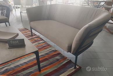 Il tutto corredato dal tavolino basso Allsize 120x60 con piano in gres che poggia su una base in alluminio verniciato, creando un interessante contrasto fra materiali.